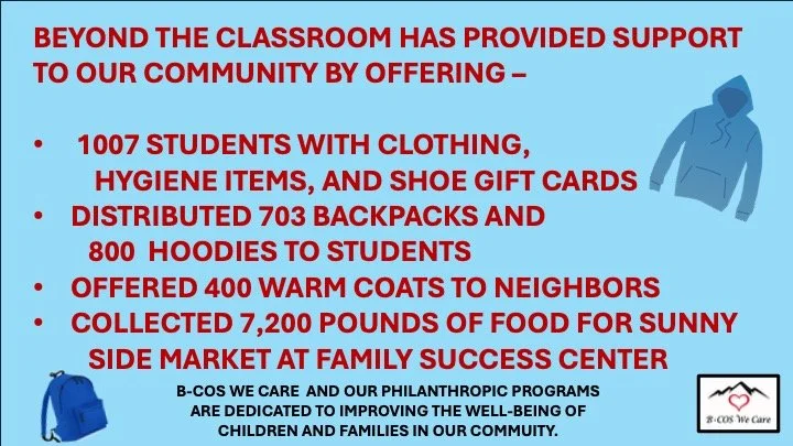 B-COS We Care is a nonprofit, all-volunteer, philanthropic organization dedicated to improving the well-being of the children and families of Colorado Springs (COS) and El Paso County.